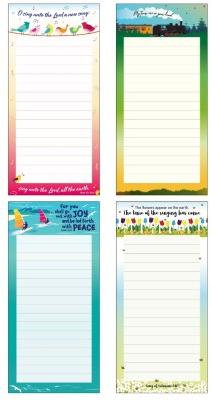 Beautifully designed Christian Fridge Notepads, with magnetic strip on the back and lined pages. -4 Different designs: God is Faithful, Blossom, I can do all things, Balloons -Bible verses on every notepad -Size: 18×8.5cm -50 lined pages each Our religious jotter fridge pads, with a Scripture verse on every page, are perfect for notes, shopping lists and to-do lists. From our inspirational Christian stationary range, with matching gifts also available, these small notebooks makes great Christian gifts for woman or men.