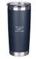The sentiment is laser-engraved on the navy blue exterior of the stainless steel mug. Be strong and courageous and do not be afraid - Joshua 1:9. Two silver stainless steel bands frame the top and bottom of the double-walled travel mug. The double insulation ensures your drink stays warm or cold for 24 hours and eliminates condensation from forming on the exterior, leaving no marks on table surfaces. The travel tumbler is outfitted with a clear plastic lid with a silicone seal that fits snuggly into its mouth. The lid has a retractable sip hole cover with a raised edge to prevent spills or leaks. The stainless steel travel mug has an 18-ounce capacity, which equals two and a half standard cups—plenty of coffee, tea, or water to keep you hydrated.